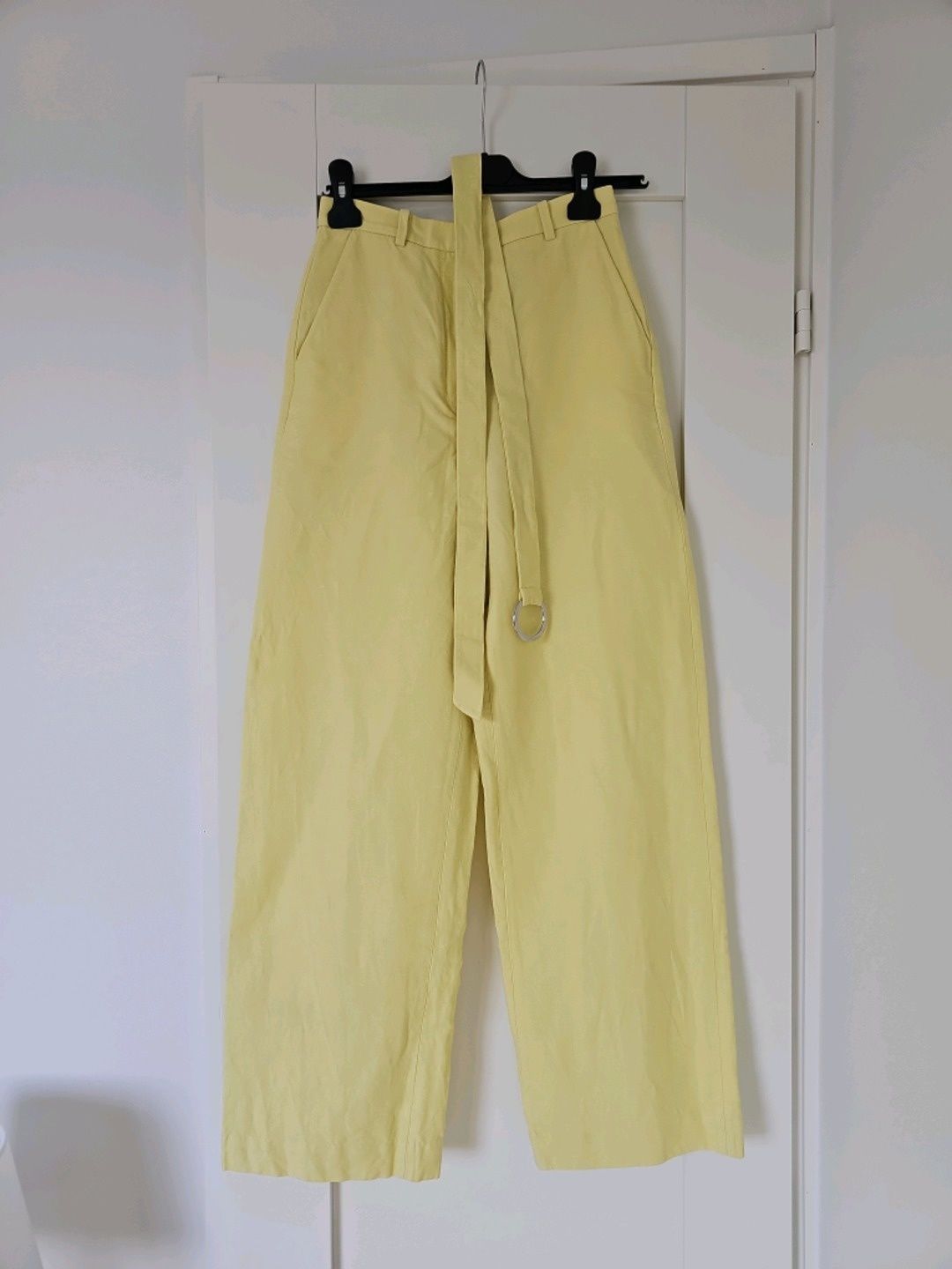 Aivan ihanat vaaleankeltaiset pellavahousut, täydelliset kesähousut helteille! 😍 Leveät lahkeet, taskut ja irrotettava vyö.