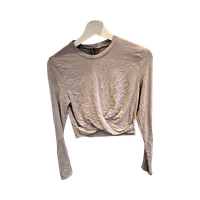 Beige pitkähiha, solmittu etuosasta, lyhyt malli.