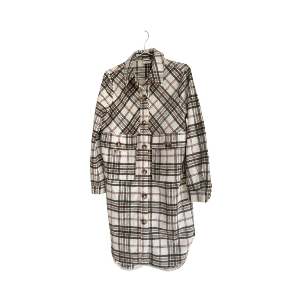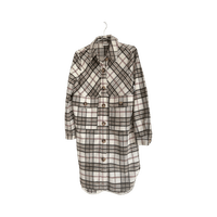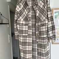 Pitkä ruudullinen takki, nappikiinnitys. Koko 34/XS. Jäänyt käyttämättömäksi, eli kunto kuin uusi.