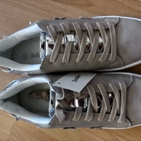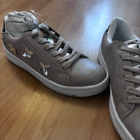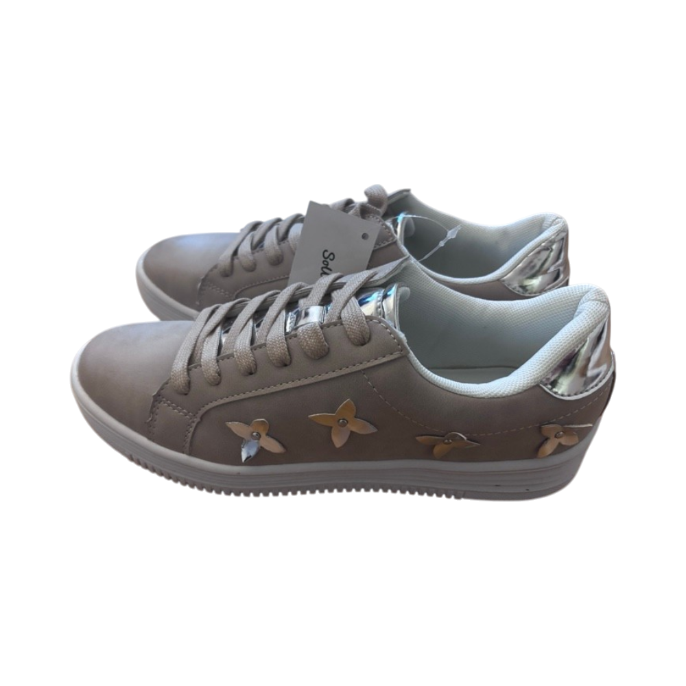 Uudet beiget naisten sneakersit koristepinnoilla.