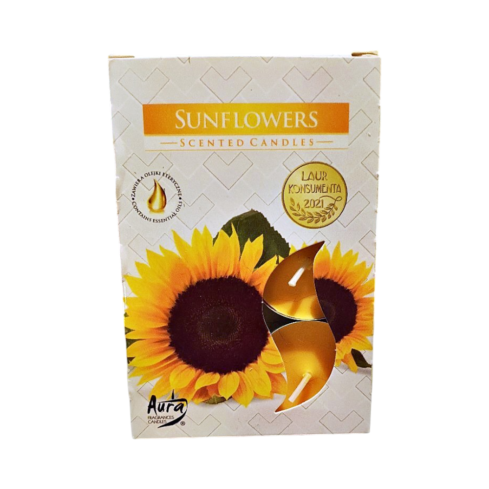 Tuikkukynttilät auringonkukan tuoksulla, 6 kappaletta