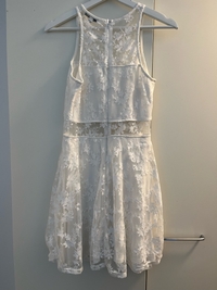 Naisten valkoinen pitsinen skater-tyylinen mekko, koko L.