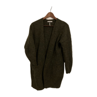 Tummanvihreä villaneuletakki. Koko M mutta pesun jälkeen ehkä paras fit S-koolle 😅 Siisti kunto!