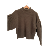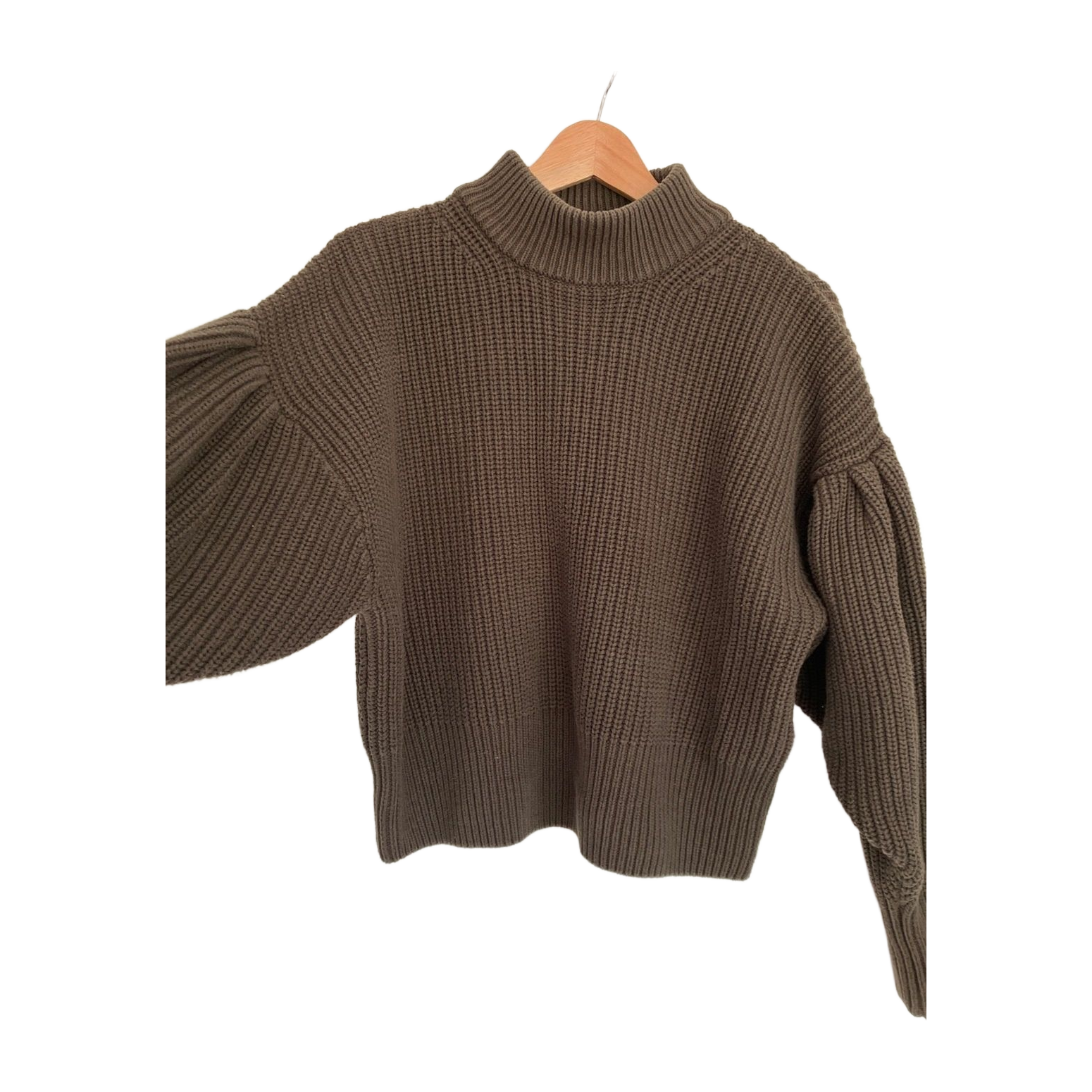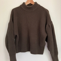 Tummanvihreä neule isoilla puhvihihoilla. Koko S, menee myös M. Aika lyhyt malli. Väri oikeasti ihan siisti, kuvissa näyttää vaalealta 😅