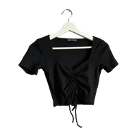 Ihanan pehmeä t-paita, jonka voi säätää edestä halutun pituiseksi. Koko M mutta vastaa paremmin S-kokoa. Lähes käyttämätön, myynnissä myös sinisenä!