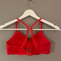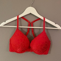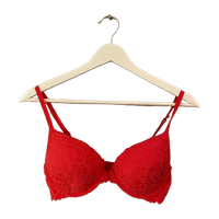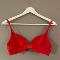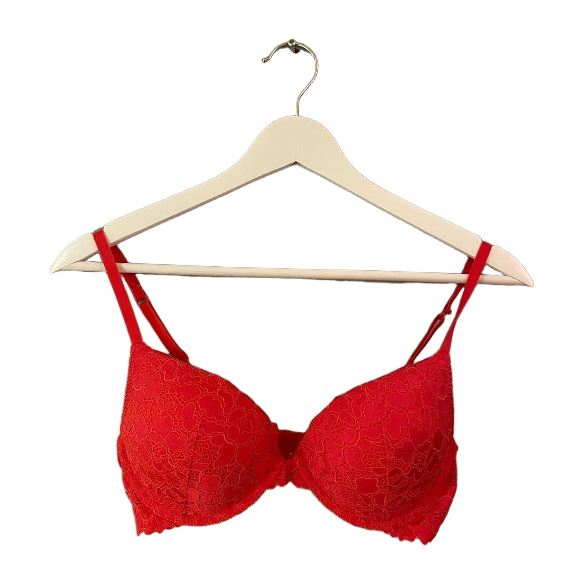 Pari kertaa käytetyt punaiset pitsirintaliivit, väri todellisuudessa vähän kirkkaampi punainen. Koko 32D eli 70D.