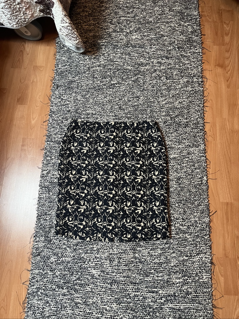 Polvipituinen hame, musta-beige kuvio. Takana halkijo sekä vetoketju. Ei veny.