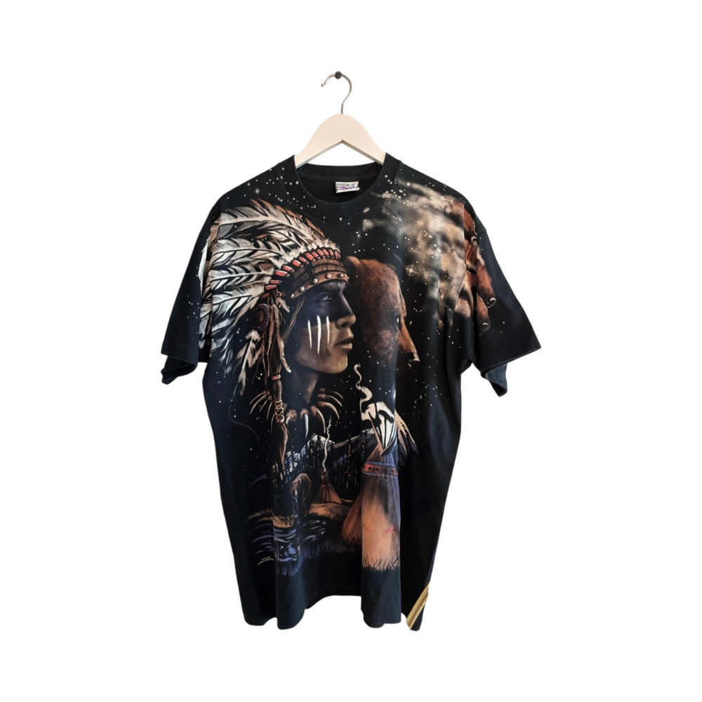 Erittäin hieno Vintage 90s Brian Fox Indian Nature T-paita.