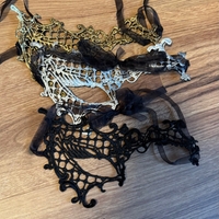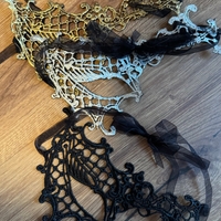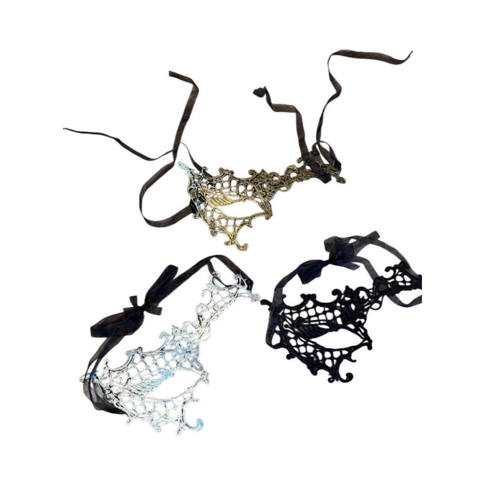 Set of decorative lace masquerade eye masks with ribbon ties.