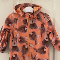 Name it softshell-haalari. Koko 104. Tosi siisti, en löytänyt vikoja. Alkujaan ollut tuommoinen epätasainen pohjaväri. HUOM! Pesty tosi tuoksuvalla pesuaineella!!
