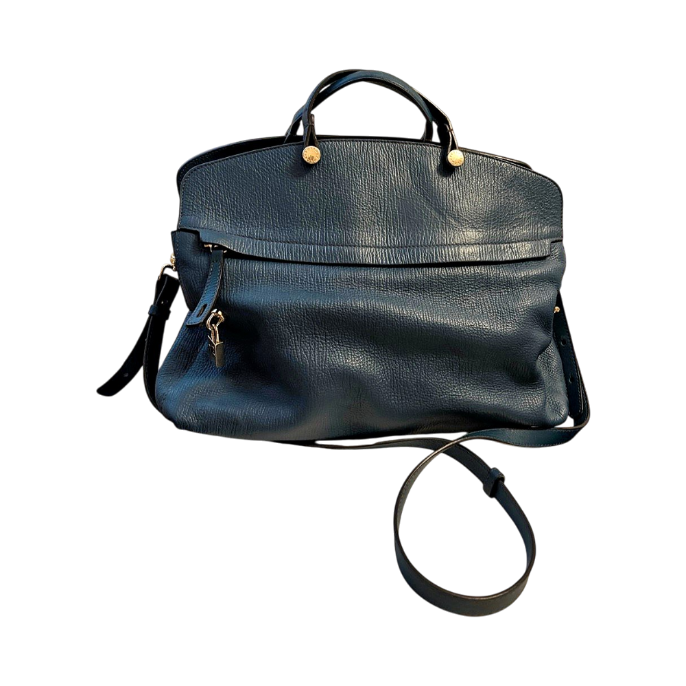 Laadukkaan Furla-merkin nahkainen olkalaukku, väri harmahtava tummansininen, oikein kaunis.