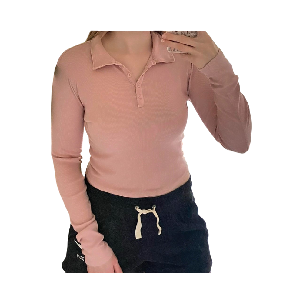 Hento vaaleanpunainen paita, sopii arkeen. Joustavaa ja pehmeää kangasta. Kaulukset. Hieman lyhyempi malli, ylettyy itsellä napaan saakka.