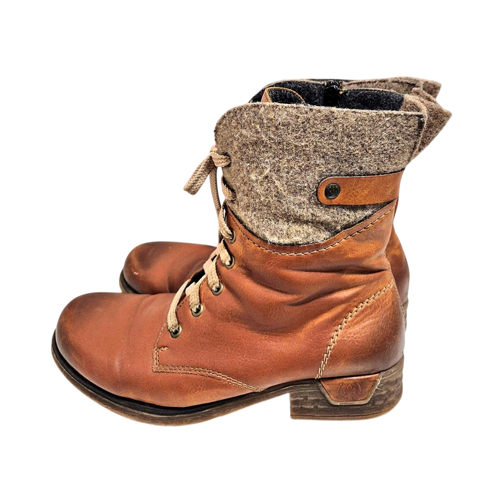 Tyylikkäät keinonahkaiset talvinilkkurit, käytetty toisten kenkien ohella. Siistit käytetyt, mutta tyyliltään "kulutetun oloiset". Kengät ovat kevyet ja mukavat. Huopavuori.