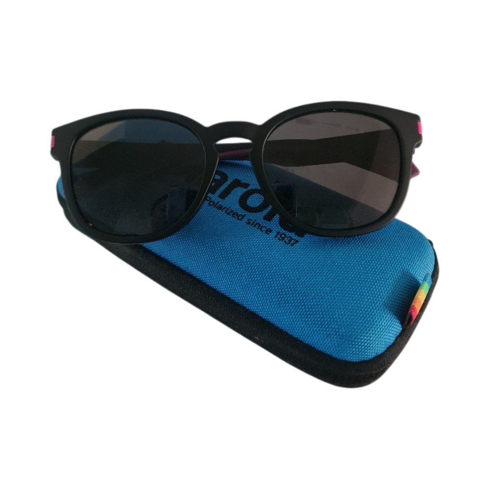 Polaroid-aurinkolasit, polarisoidut linssit, mukana kotelo.