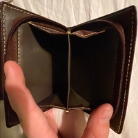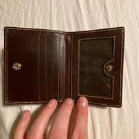 Myydään pieni ruskea nahkalompakko korttipaikat ja kolikkotasku.