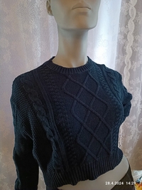 Pari kertaa käytetty tummansininen lyhythelmainen neulepaita.