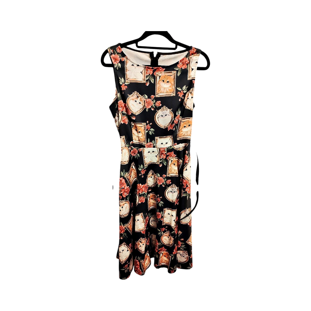 Kiva ja värikäs mekko kissojen kuvilla. Todella hyväkuntoinen, muutaman kerran käytetty. Mekossa taskut ja nahkavyö.