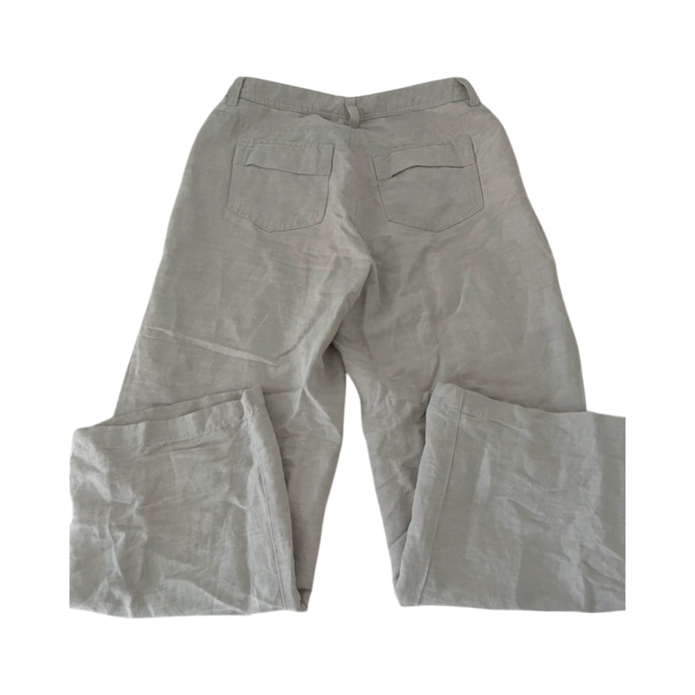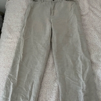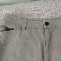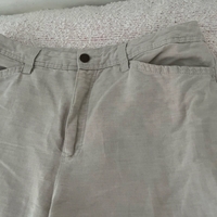 Vaalean/beigeen väriin taittuvat housut. Takana söpöt taskut. Koossa 44, mutta vastaa reilusti pienempää noin M-L kokoa.