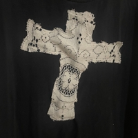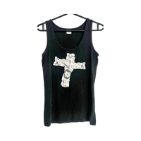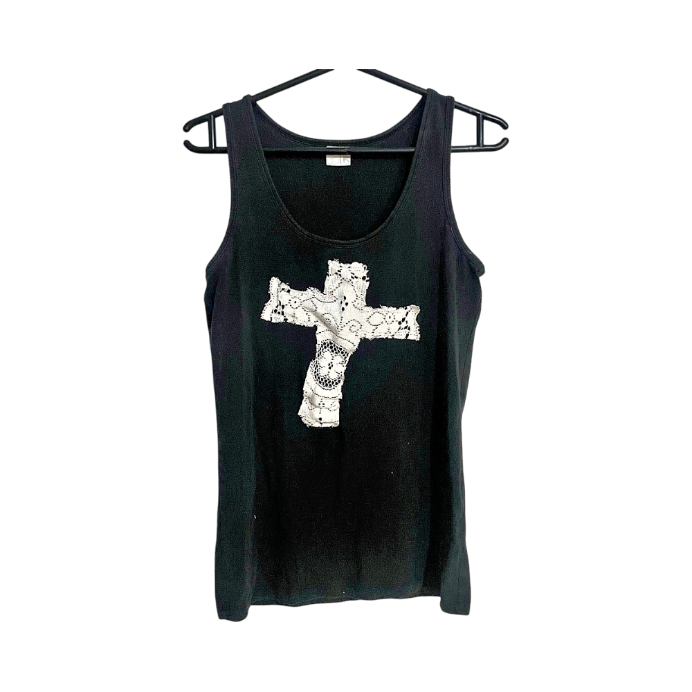 Musta hihaton toppi valkoisella pitsikuvioinnilla, koko 38.