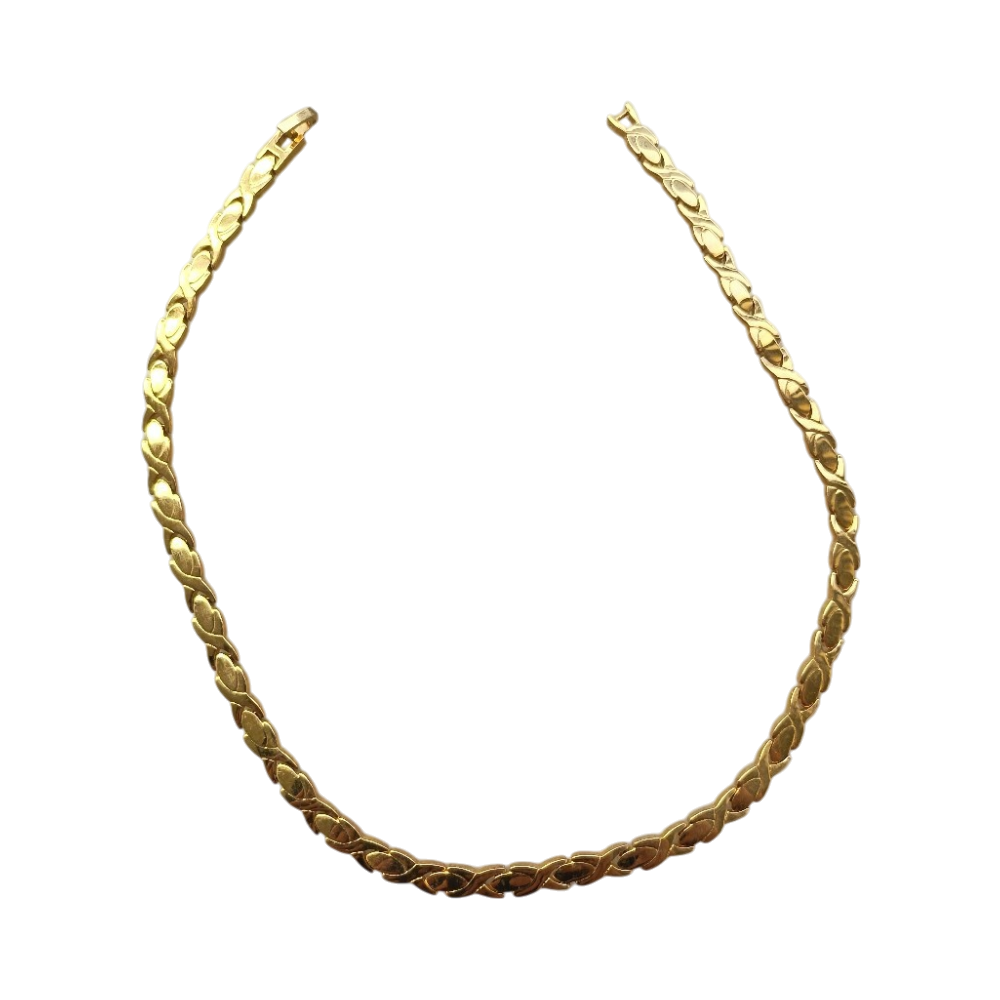 Kultainen laskettu linkkiketju. 45cm pitkä ja käyttämätön. Dubai tyylinen. Ostettu koru liikkeestä ,joten kultaus ei tummu ja lohkea pois
