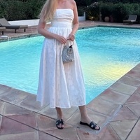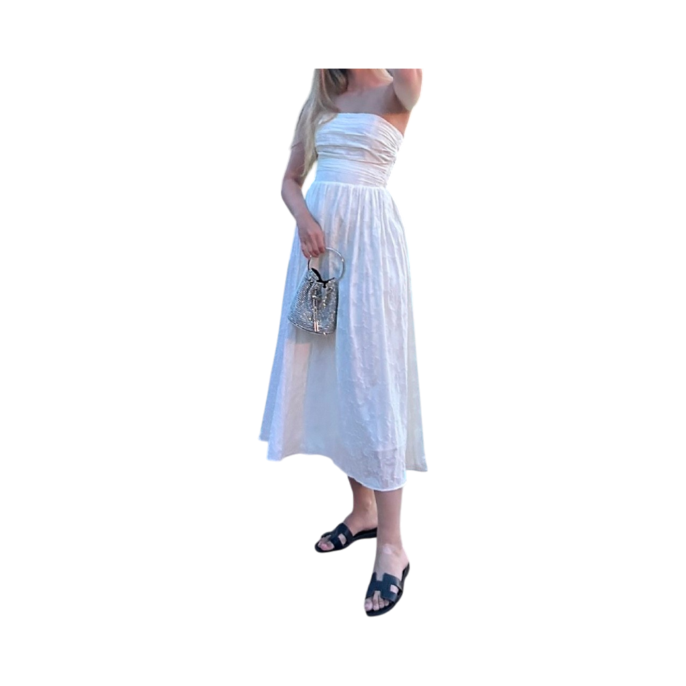 Valkoinen olkaimeton mekko, jossa korostus kuosia, koko S.