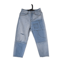 Light blue patchwork jeans with relaxed fit and ankle length. used only once