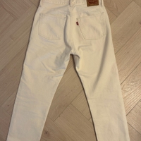 Valkoiset Levi’s 501 -farkut. Koko W27 L26. Käytetty vain muutaman kerran, ei istuneet omalle kropalle. Materiaali 100% puuvillaa.