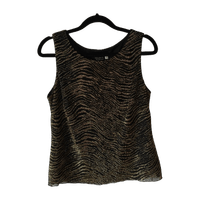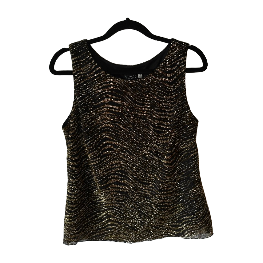 Juhlava hihaton paita mustalla ja kultaisella kuviolla. Päälliosa ohutta ja läpikuultavaa, mutta tässä on vuori.