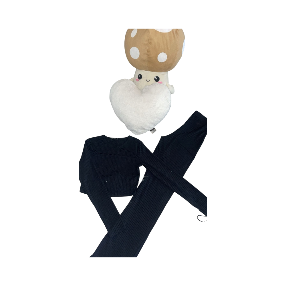 Ribbineulos, pitkähihaiset ylä- ja alaosa setti, musta.
