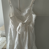 Kaunis kesämekko säädettävin olkaimin ja selkäpuolella rusetti-yksityiskohdalla.