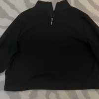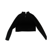 Cropped black sweatshirt with half-zip mock neck, long sleeves. Sopii s/m henkilöille