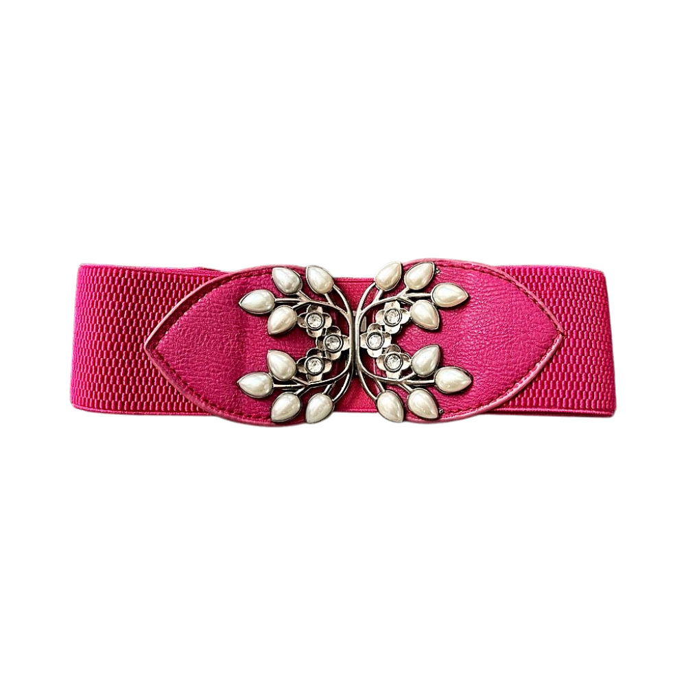 Fuksianpunainen stretchvyö helmikoristeisella soljella