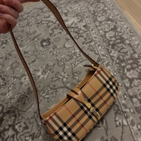 Pieni olkalaukku, ruutukuvio, vetoketjullinen sisätilaa. Vähän kulumaa (näkyy vikassa kuvassa)