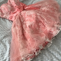 Yhdet juhlat juhlittu ihana vaaleanpunainen juhlamekko pitsi- ja tylliyksityiskohdilla🌸 Takana vetoketjukiinnitys ja hakanen. Mukana irroitettavat naruolkaimet. Rusetissa kuvien mukaisia vaaleita tahroja, jotka eivät juuri näy pidemmältä katsottuna. Alushameessa myös pieni jälki, joka ei kuitenkaan näy tyllin ja pitsin alta.