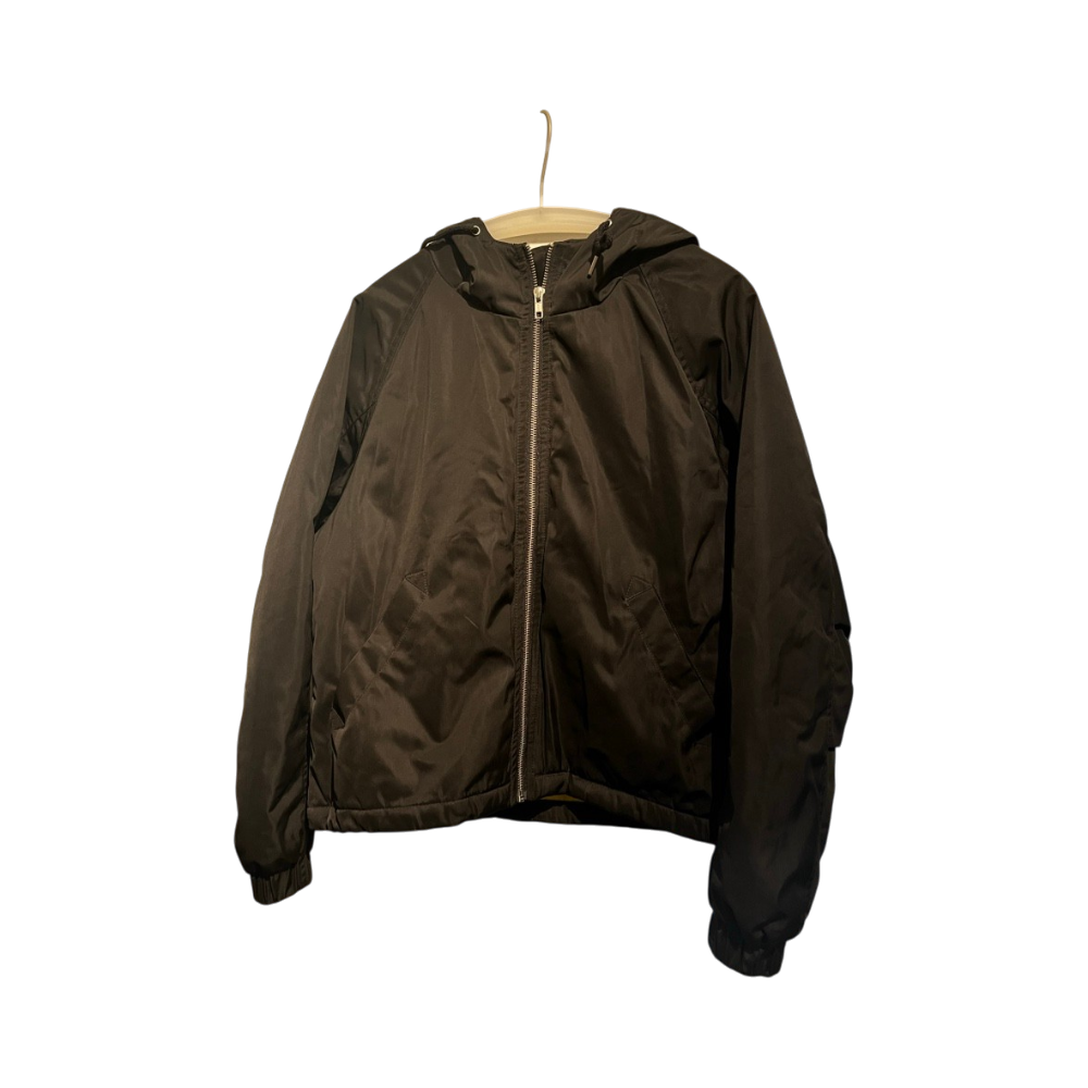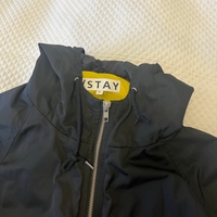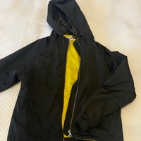 Kevyesti topattu takki, keltainen vuori, vetoketju, kokoa XS.