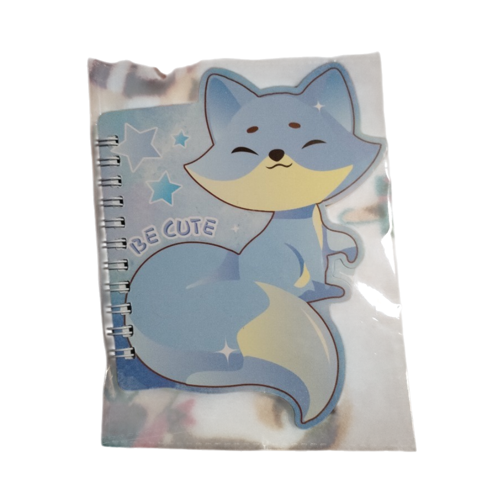 Pieni spiraalilla sidottu muistikirja, kettu-kuvioinen kansi.