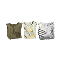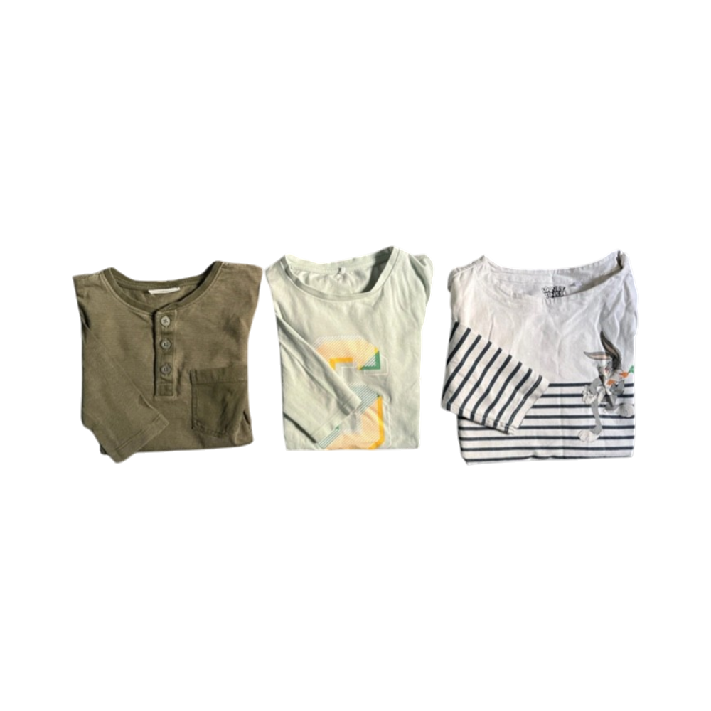 Vaaleanvihreän paidan hihan alapuolella pieni tahra ja looney tunes paidan väiski hieman kulunut
