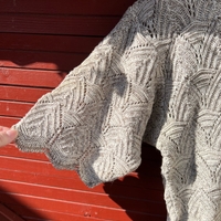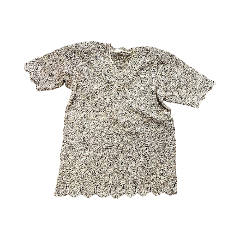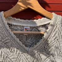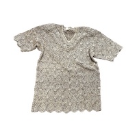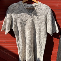 Lyhythihainen kevyt pitsineule V-kaula-aukolla, siisti kunto. Koko noin M/L. Olkatoppaukset.