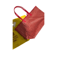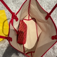 Spacious red patterned canvas tote with small pouch, lightly used.