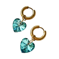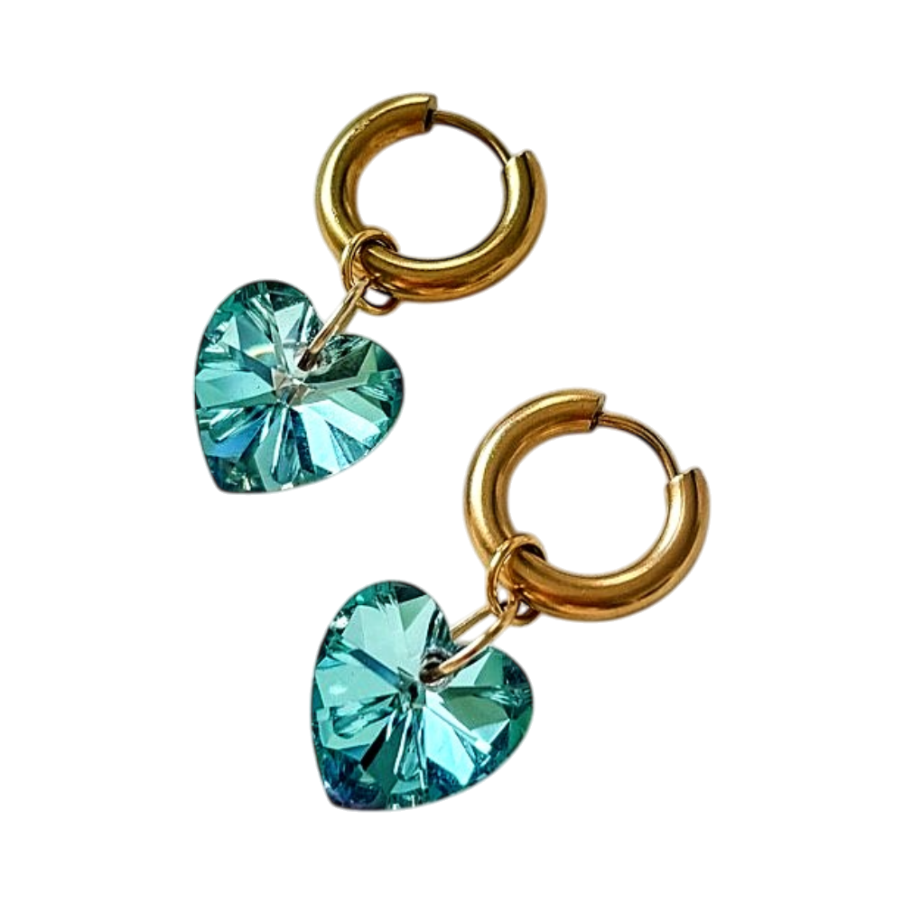 Kultaiset renkaat turkooseilla kristallisydämillä, kevyet ja siistit.