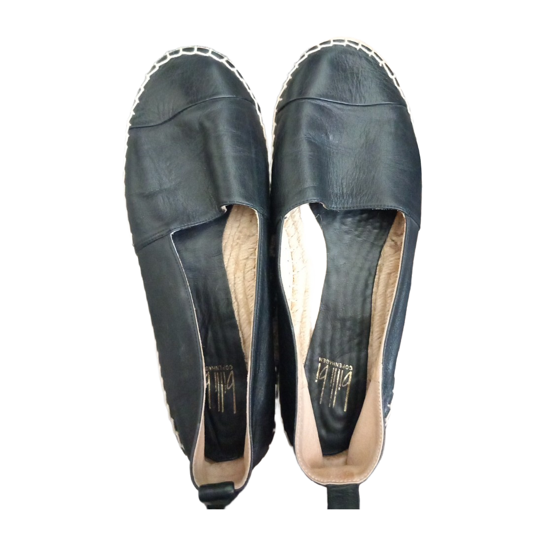 Musta nahkainen espadrillot, beige pohja, käytetyt