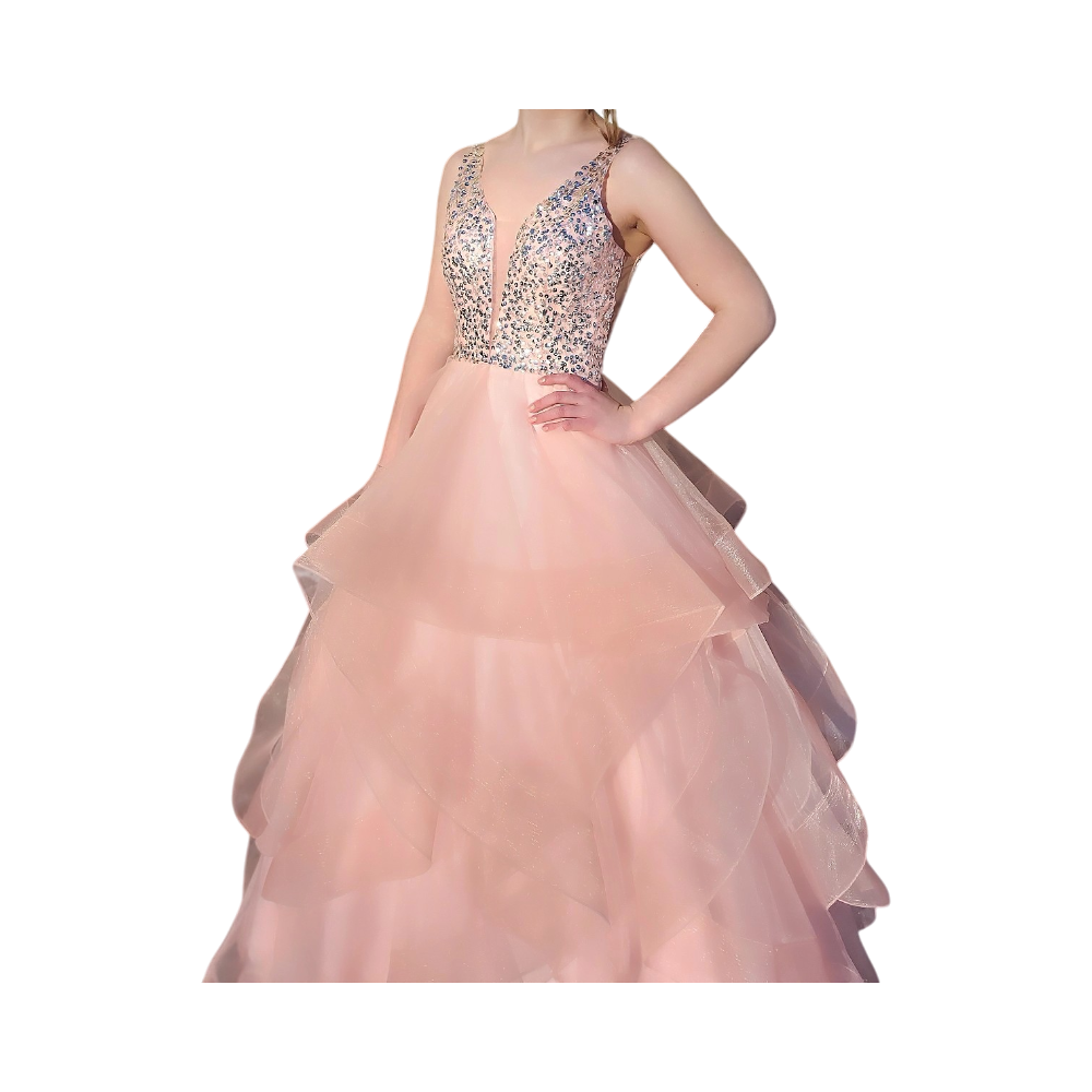 Vaaleanpunainen vanhojentanssimekko koossa 34. Mekon mukana saa pukupussin ja vannehameen. Olen itse 165 cm pitkä ja tanssin koroilla sekä vannehameella. Hintaa voi tarjota!