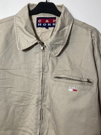 Päällys ja vuori puuvillaa. Hihojen vuori polyesteriä.