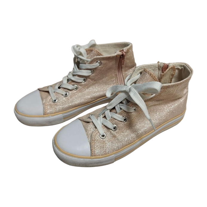 Vähällä käytöllä olleet glitter kenkulit. Sivuissa vetoketjut. Nauhoilla pystyy kiristää tarvittaessa.