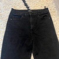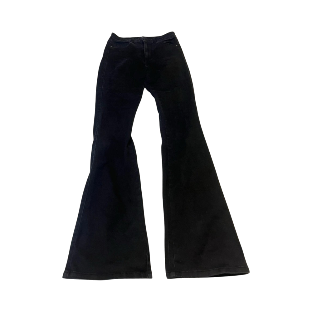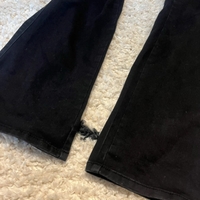 Mustat hyvässä kunnossa olevat pitkälahkeiset bootcut farkut. Ainoa vika näkyy viimeisessä kuvassa.