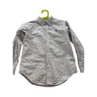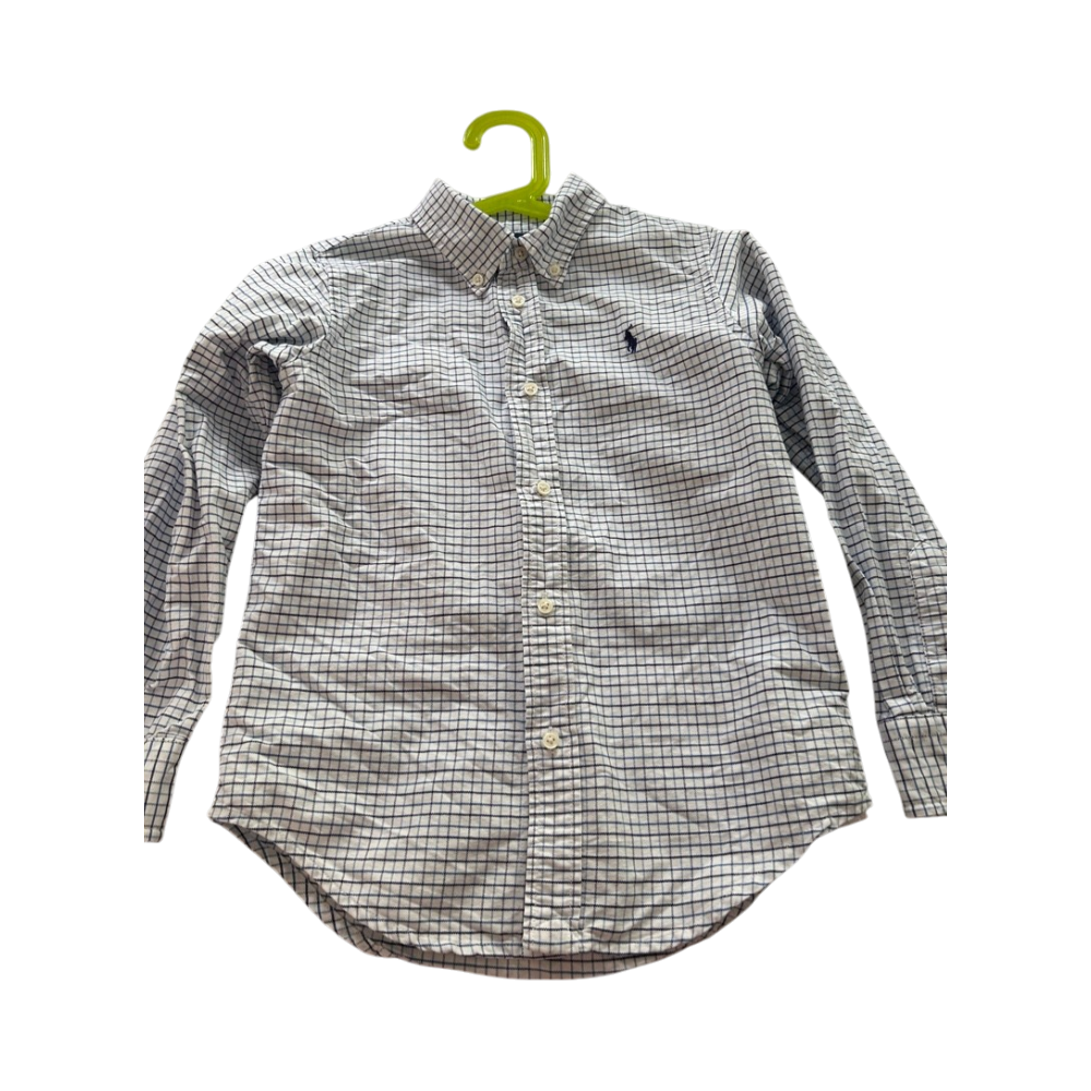 Siniruudullinen puuvilla kauluspaita, koko 4, eli 4 v. Paristi ollut päällä. Ostettu Floridasta.