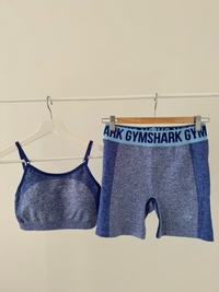 Uusi gymshark setti urheilurintaliivit ja shortsit, koko M. Flex mallisto. Väri: Earl blue marl, loppuunmyyty