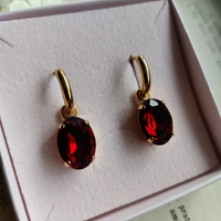 Käsintehdyt korvakorut joissa upeasti hohtavat pisaranmuotoiset Aurea kristallit. Kullanväriset renkaat ruostumatonta terästä. Korujen pituus noin 3 cm. Kaupan päälle rasia korujen säilytykseen. #handmade #earrings #party #crystal #red