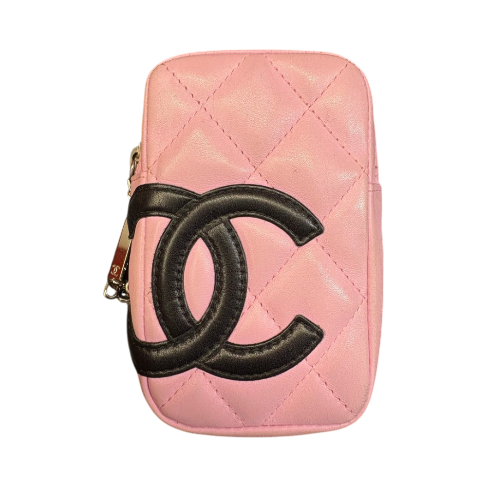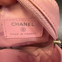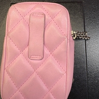 Vaaleanpunainen tikattu pikkupussukka, musta logoyksityiskohta. Erittäin hyväkuntoinen. Alkuperäinen laatikko.