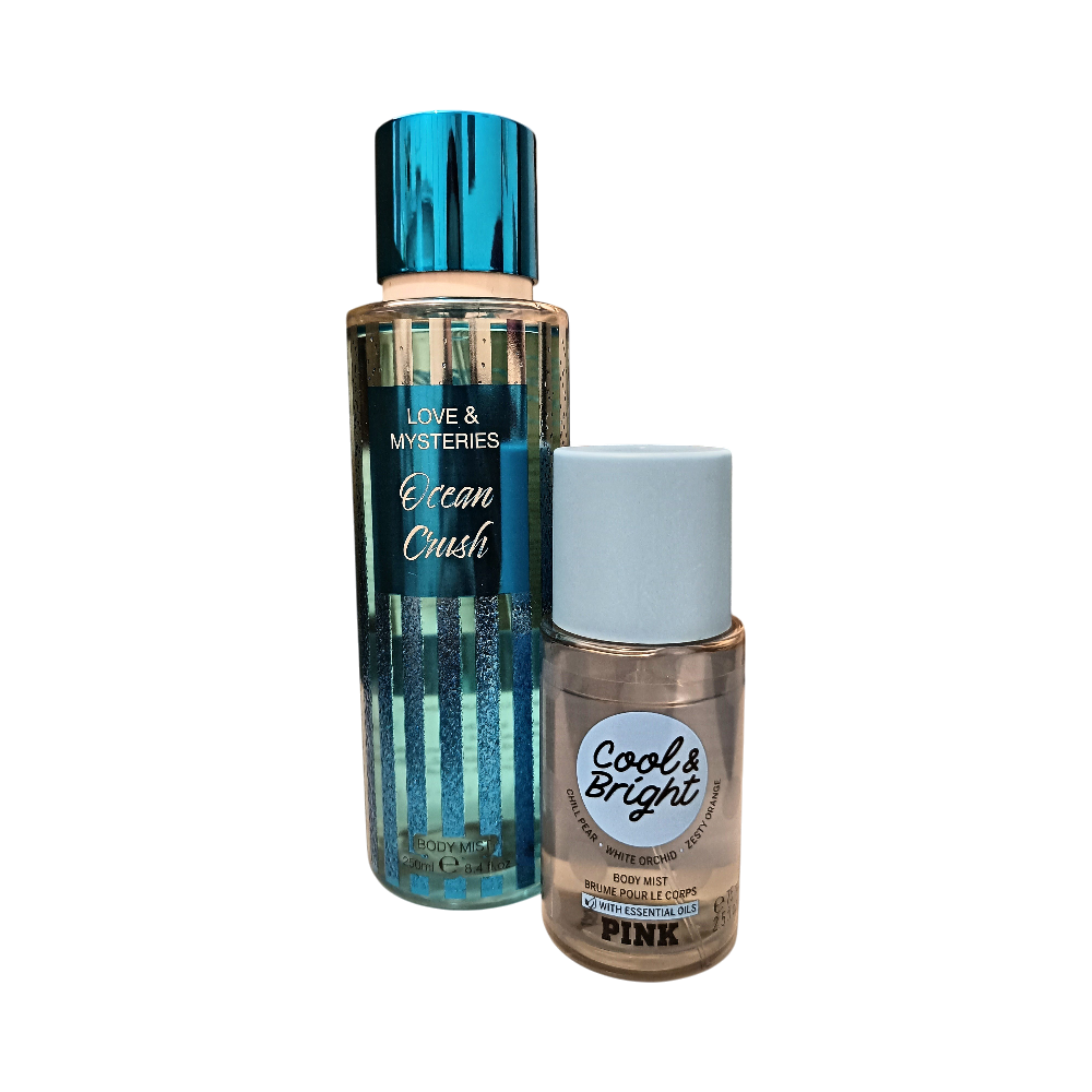 pinkin cool and bright bodymist ja tokmannista ostettu victoria secretin Aqua kiss dupe🧼
